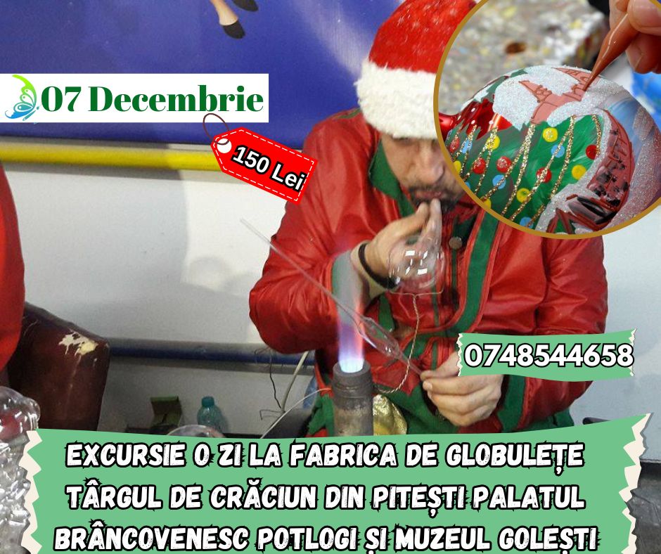 EXCURSIE O ZI LA FABRICA DE GLOBULEȚE TÂRGUL DE CRĂCIUN DIN PITEȘTI PALATUL BRÂNCOVENESC POTLOGI ȘI MUZEUL GOLEȘTI